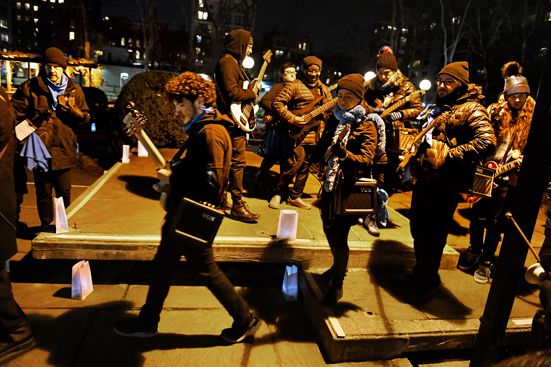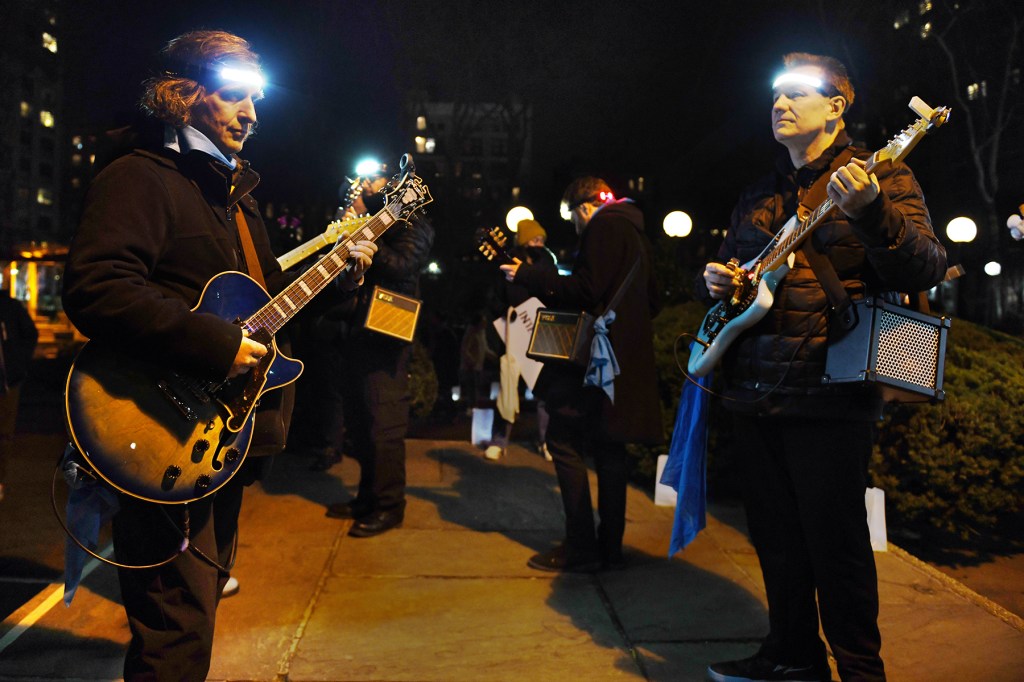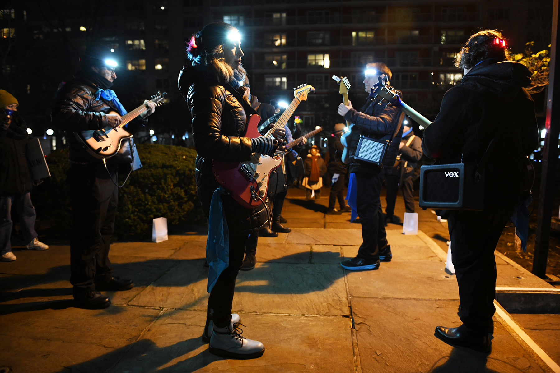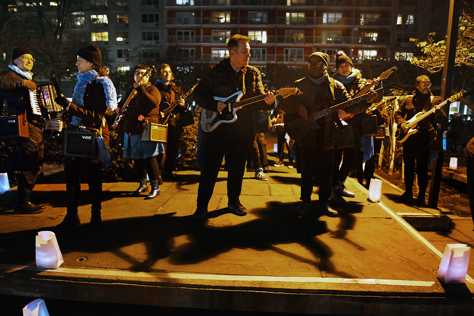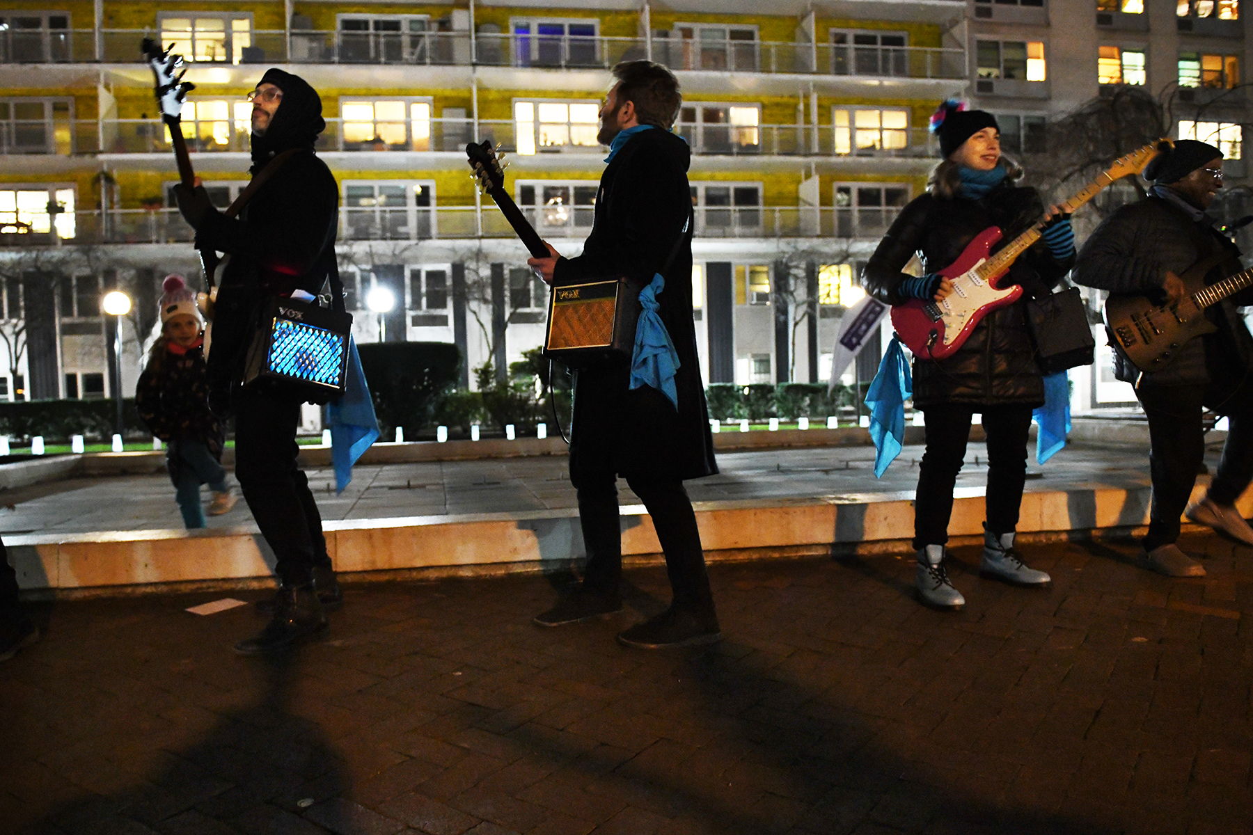 Winter Luminaria with Tilted Axes: Music for Mobile Electric Guitars, December 21, 2022 presented by @nyufacultyhousing Happenings with Make Music Winter. Photos: Bob Krasner
