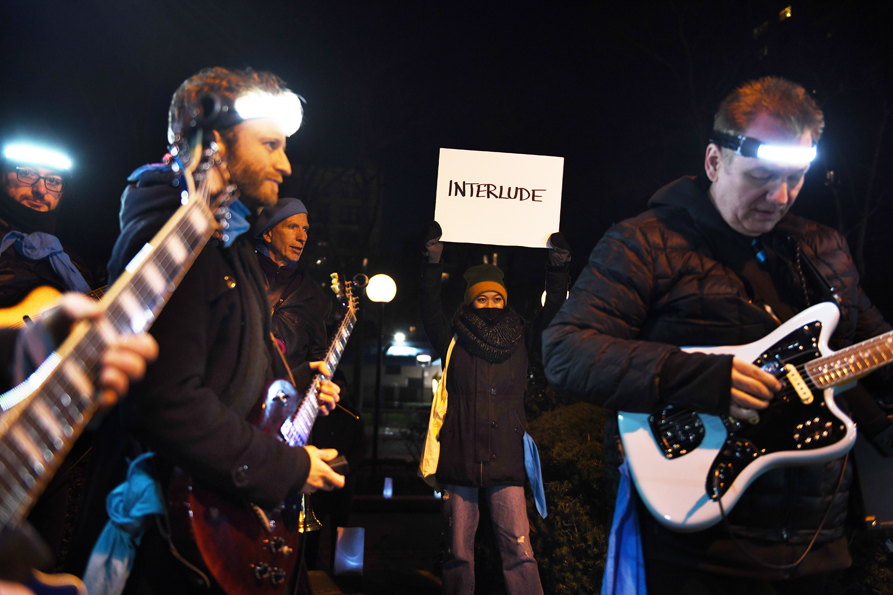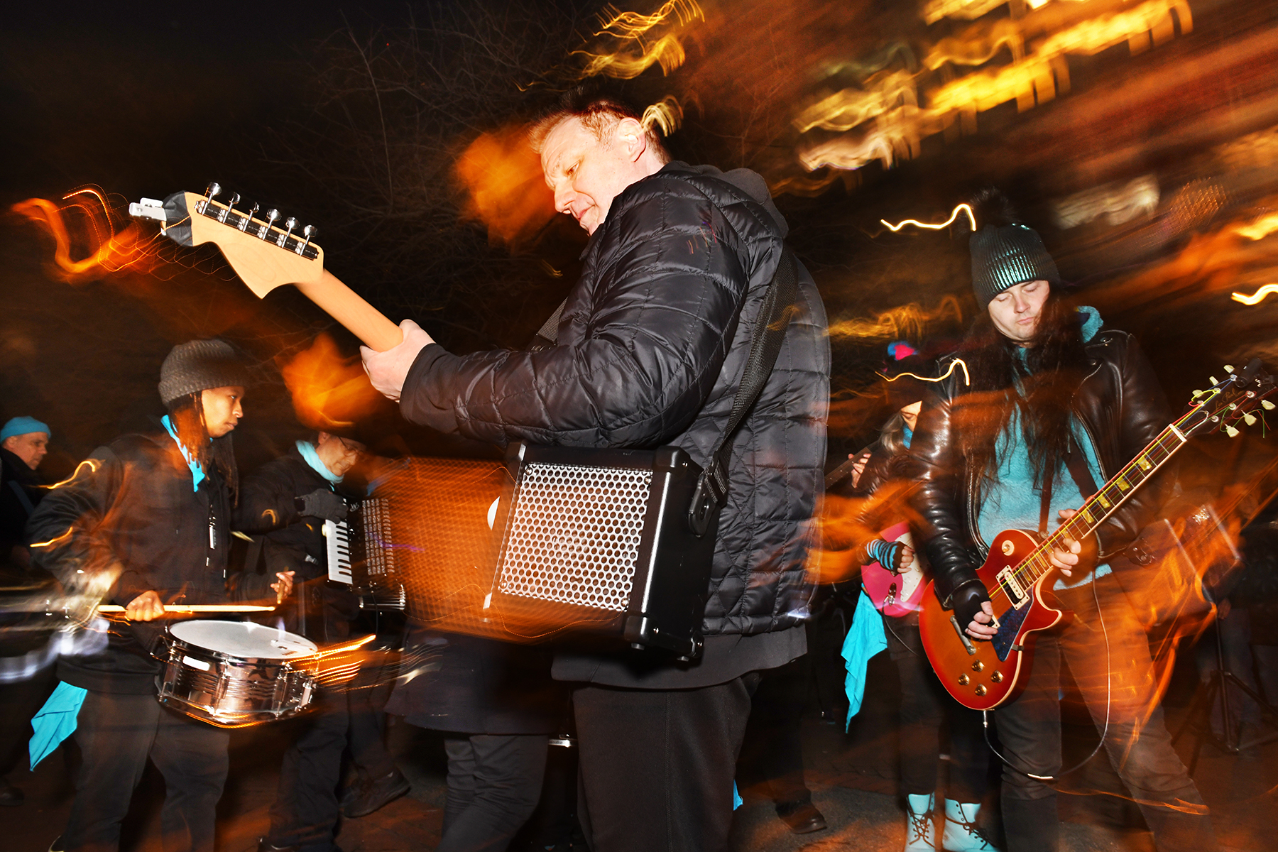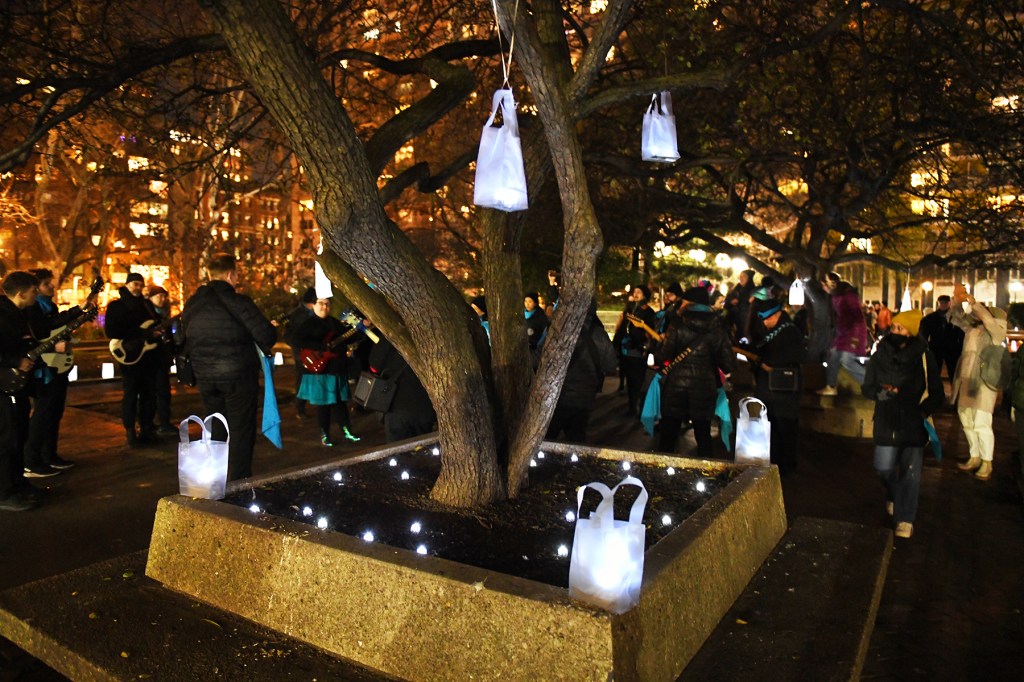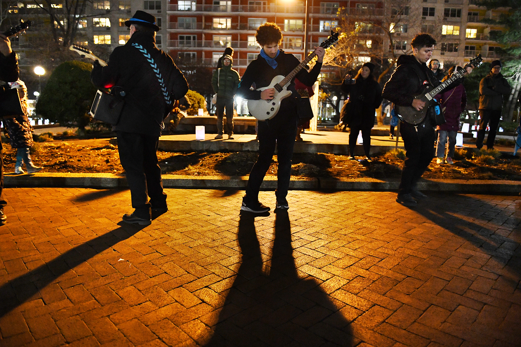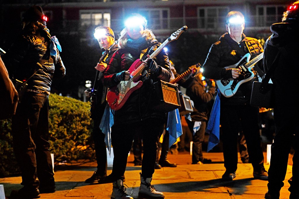 Winter Luminaria with Tilted Axes: Music for Mobile Electric Guitars, December 21, 2022 presented by @nyufacultyhousing Happenings with Make Music Winter. Photos: Bob Krasner