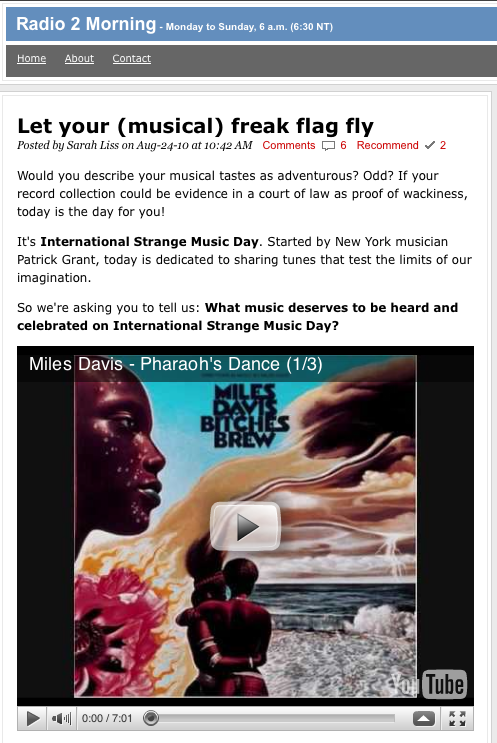 It’s funny how a holiday that I “invented” for my web site in the 90s actually caught on. Mostly, it seems, by summer school programs looking for activities for the kids i.e. homemade instruments, listening exercises, and the like. It gets a little bigger every year.