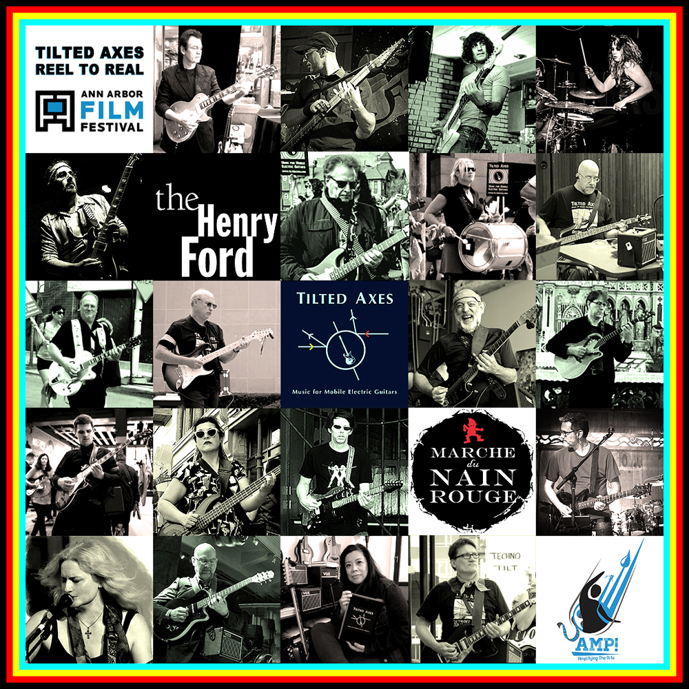 Tilted Axes: Music for Mobile Electric Guitars is a project of Peppergreen Media and is powered by Vox Amplification courtesy of KORG USA. We thank our performance partners The Ann Arbor Film Festival, The Henry Ford, The Marche Du Nain Rouge, Eastern Michigan University and AMP!,Detroit Guitar in Birmingham, and Grove Studios in Ypsilanti.